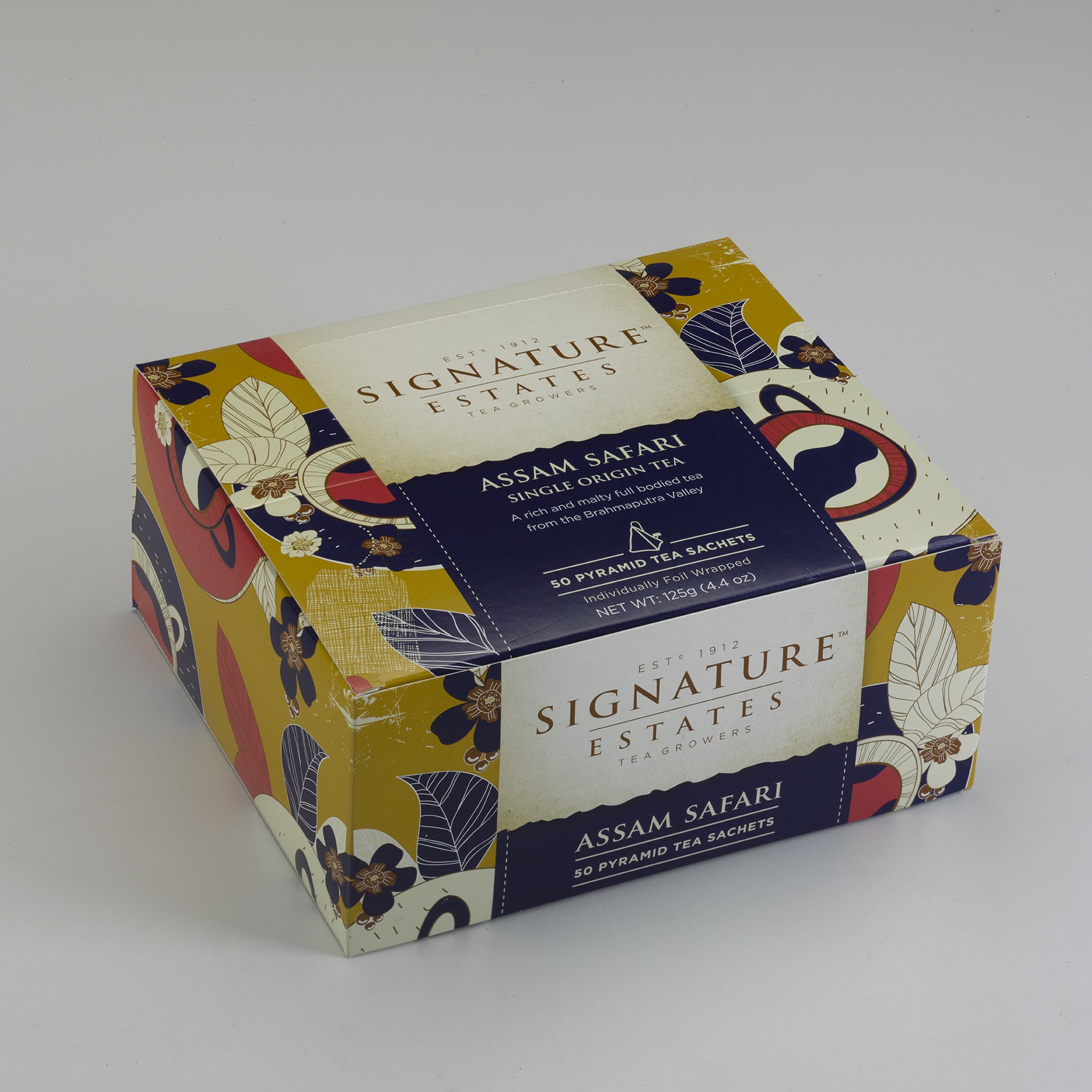 Assam, meaning ‘Peerless’, is a region in Northeastern India. It resonates with memories of man’s pioneering efforts to cultivate tea for worlwide commerce. Irrigated by a spectacular river system, the Brahmaputra, it is the largest tea growing region in the world. Assam Safari tea creates a vigorous, brightly coloured cup with a malty taste.